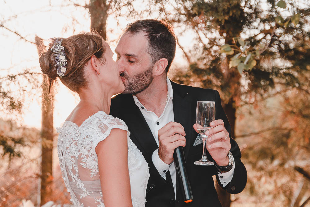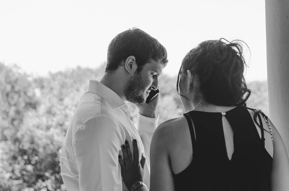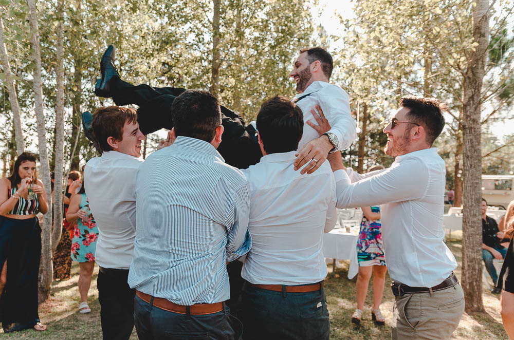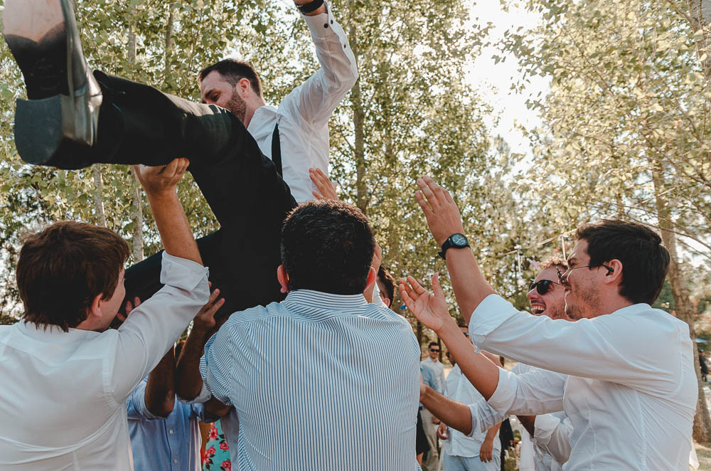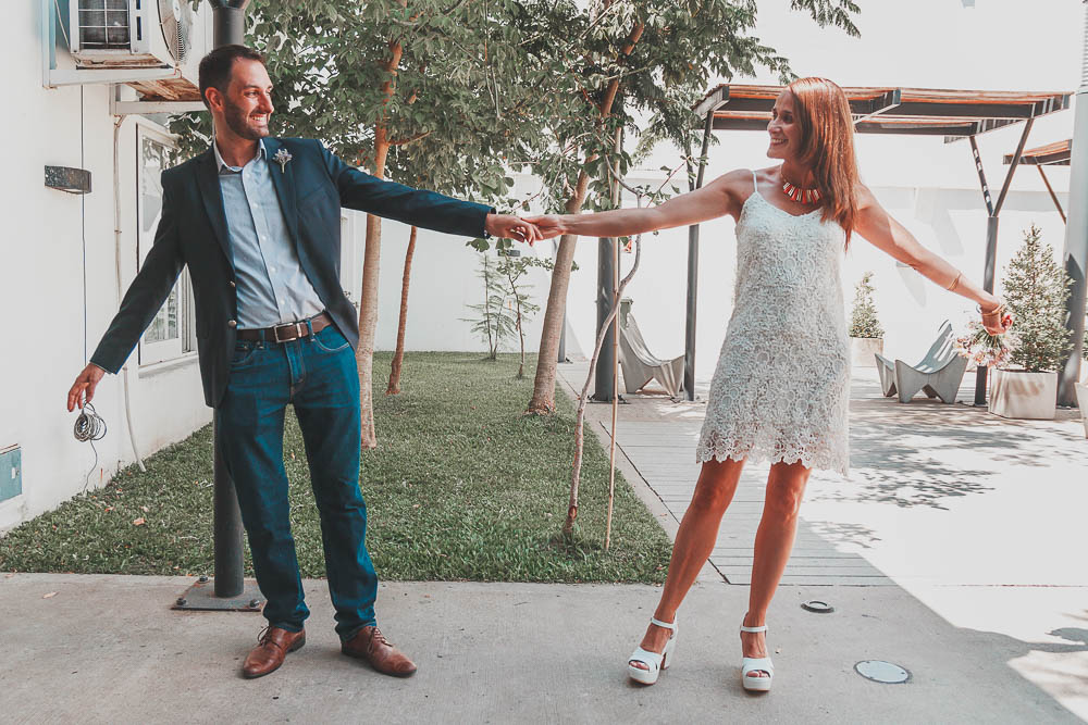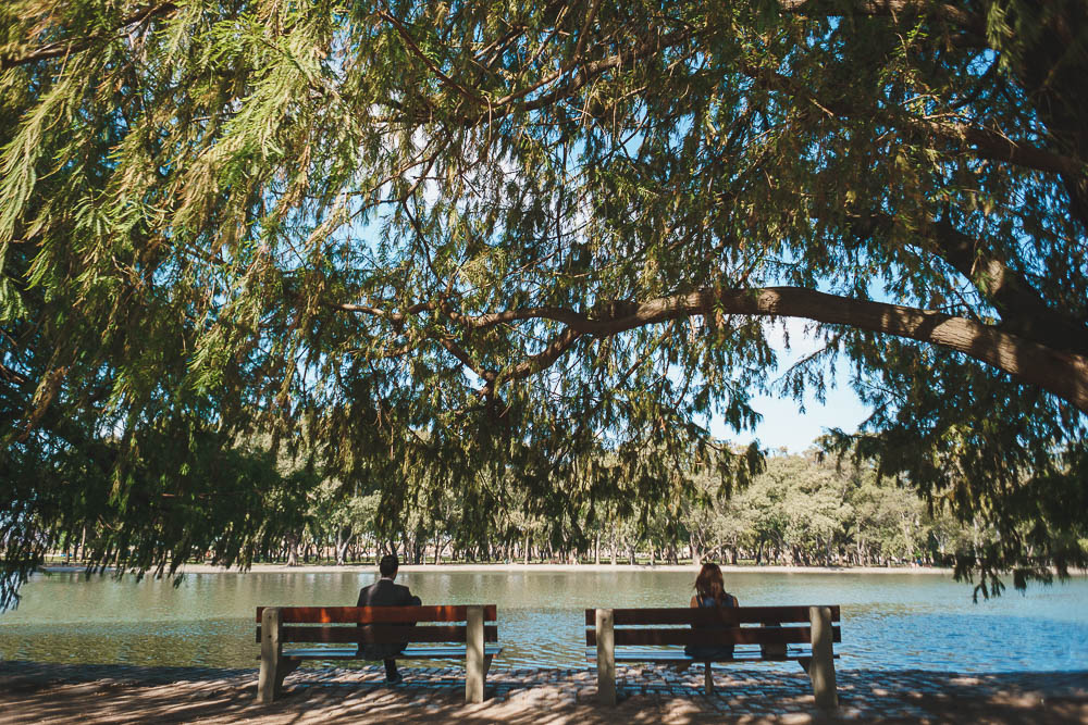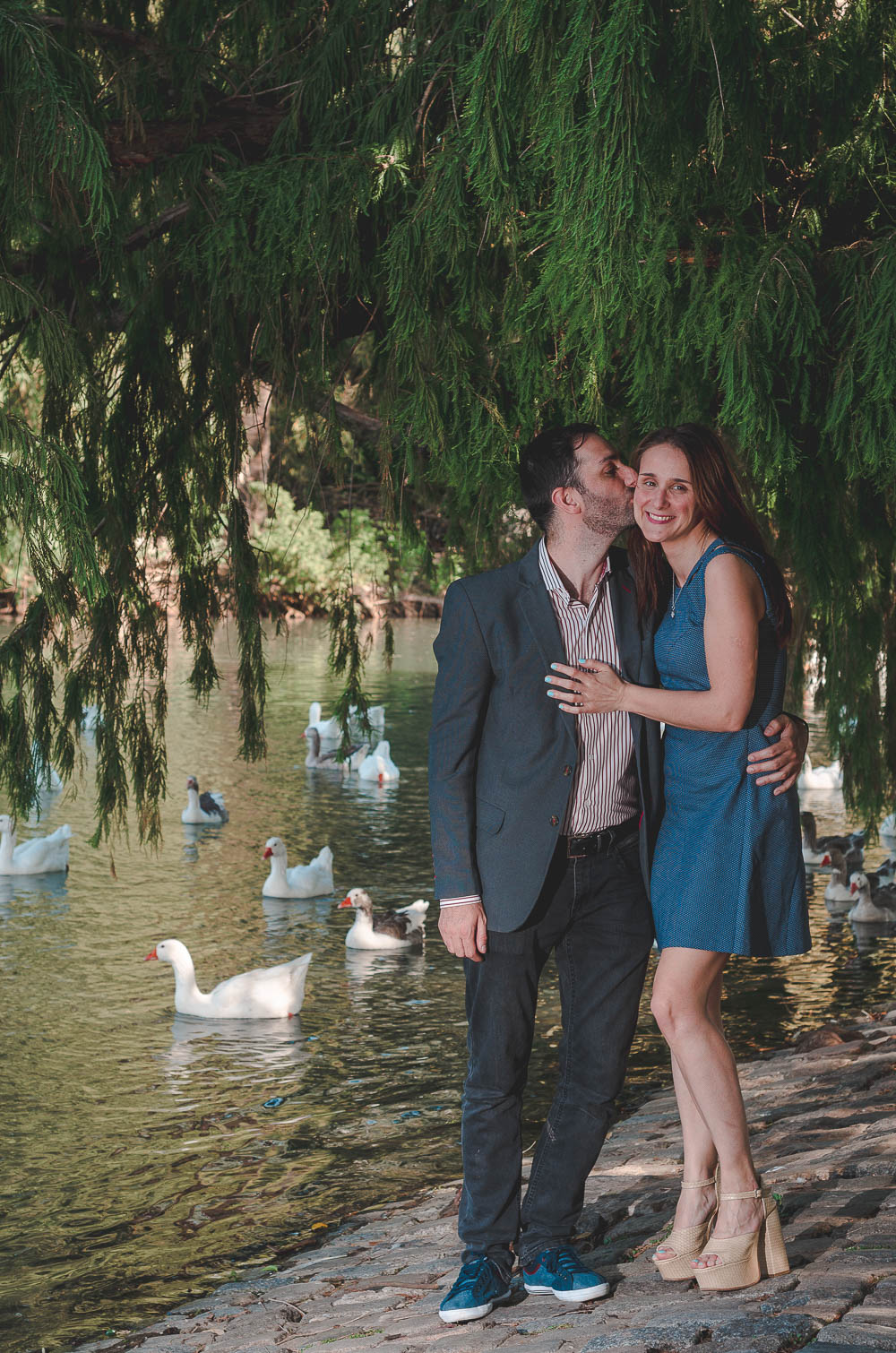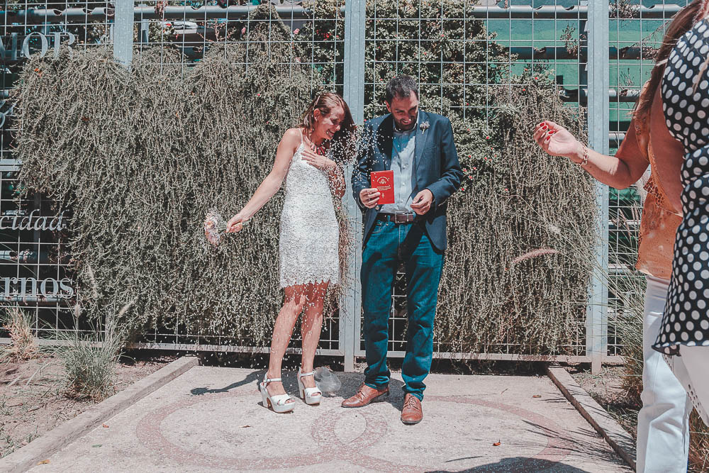 Comenzando en Palermo con el lago de fondo, terminamos en la fiesta, con ambos en la pileta. El agua como hilo conductor, dejando ver la transparencia de la felicidad compartida por sellar ese amor en un acto de compromiso ante la Ley y ante Dios. El atardecer ilumino el brindis y las palabras de amigos y familia inundó al flamante matrimonio.