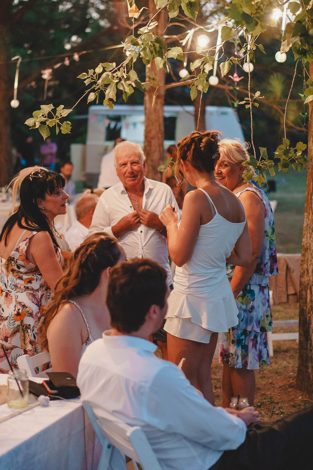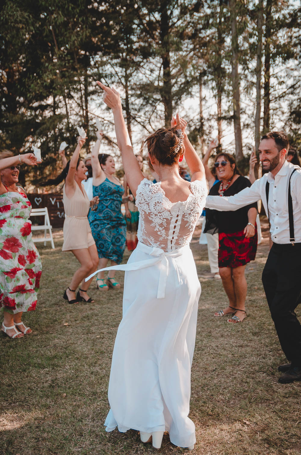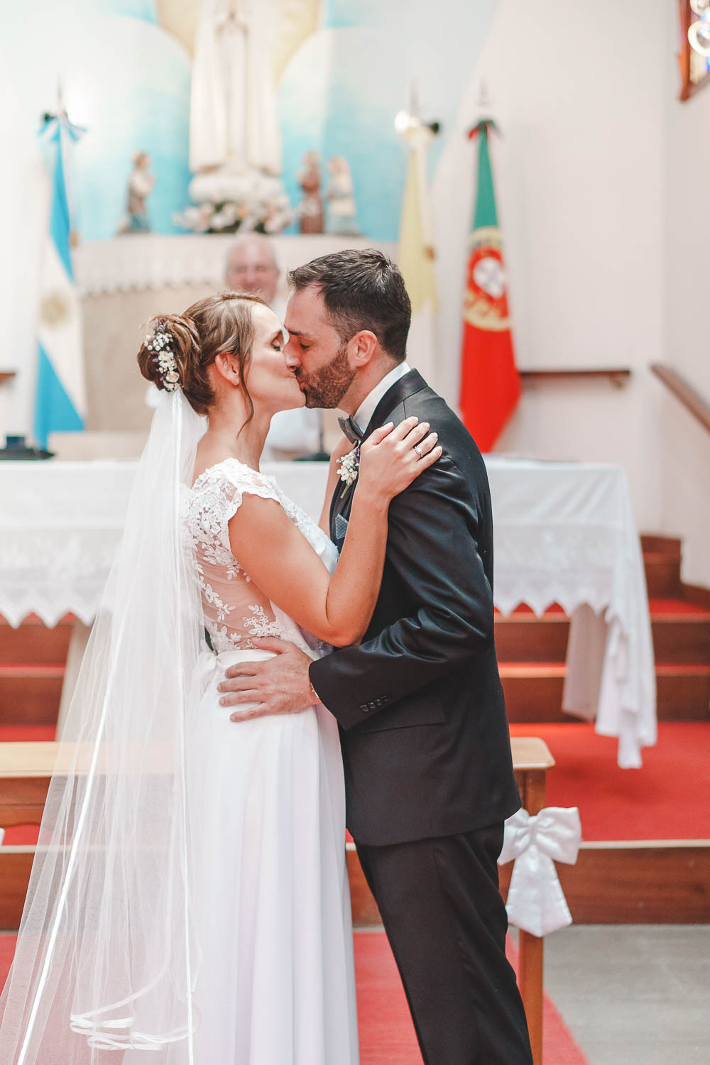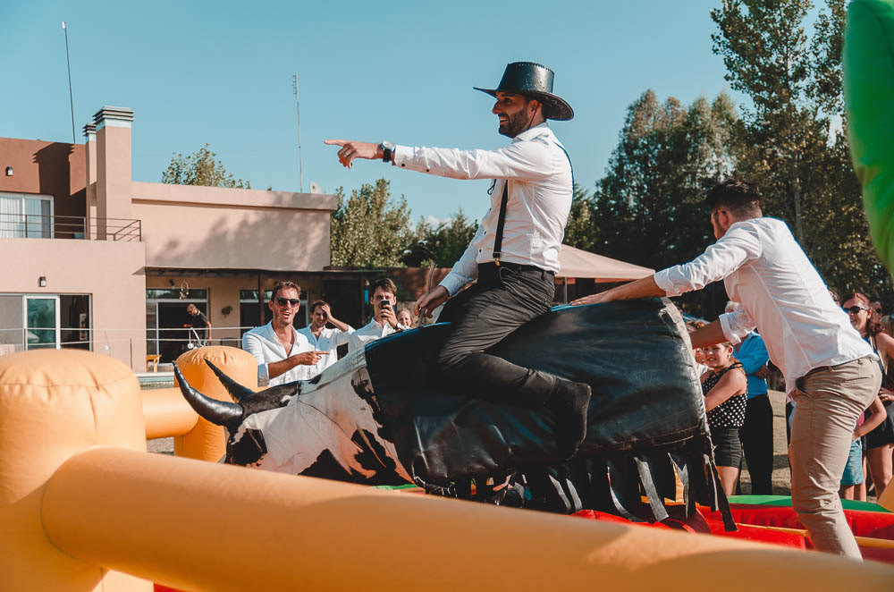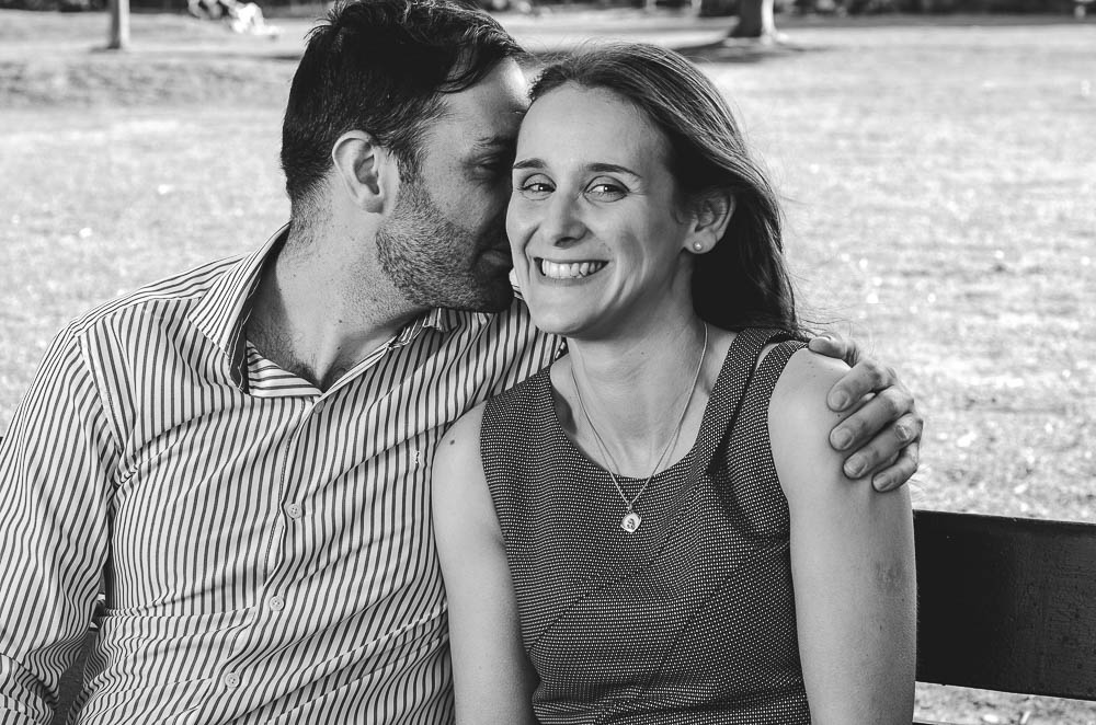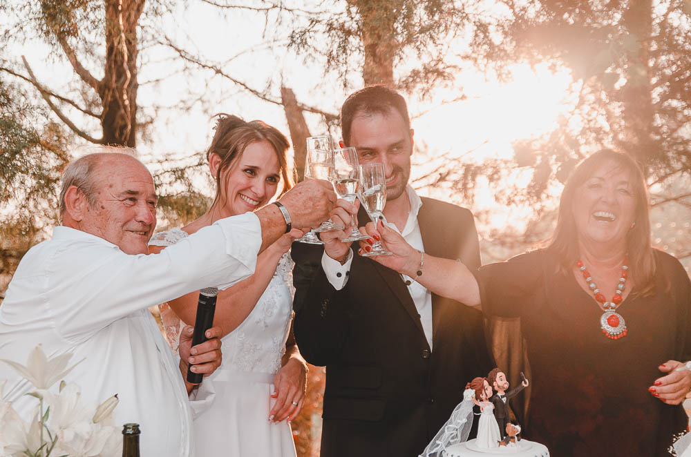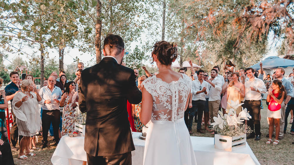 Comenzando en Palermo con el lago de fondo, terminamos en la fiesta, con ambos en la pileta. El agua como hilo conductor, dejando ver la transparencia de la felicidad compartida por sellar ese amor en un acto de compromiso ante la Ley y ante Dios. El atardecer ilumino el brindis y las palabras de amigos y familia inundó al flamante matrimonio.