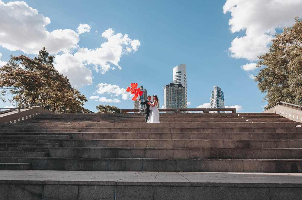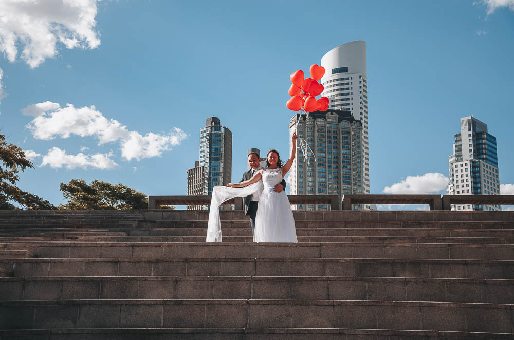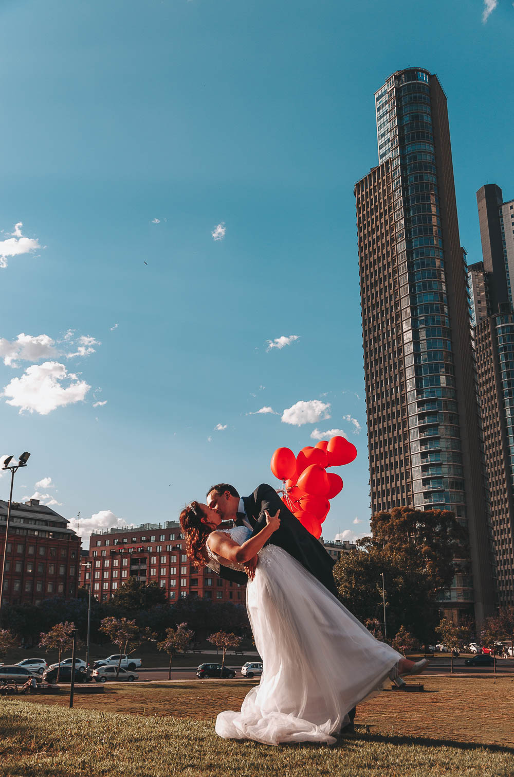 Un cierre espléndido para el flamante matrimonio. En pleno Puerto Madero, rodeados de globos y risas, la sesión Post-boda se hizo presente y se adueñaron de la cámara para perpetuar un momento único. La caída del sol llegó, Diana y Anton se cambiaron las prendas que lucieron esa noche inolvidable, y compartimos una rica merienda para un cierre con broche de oro.
