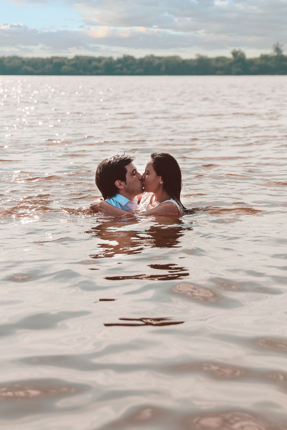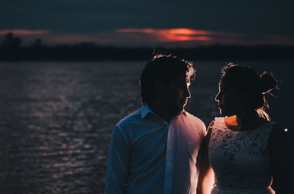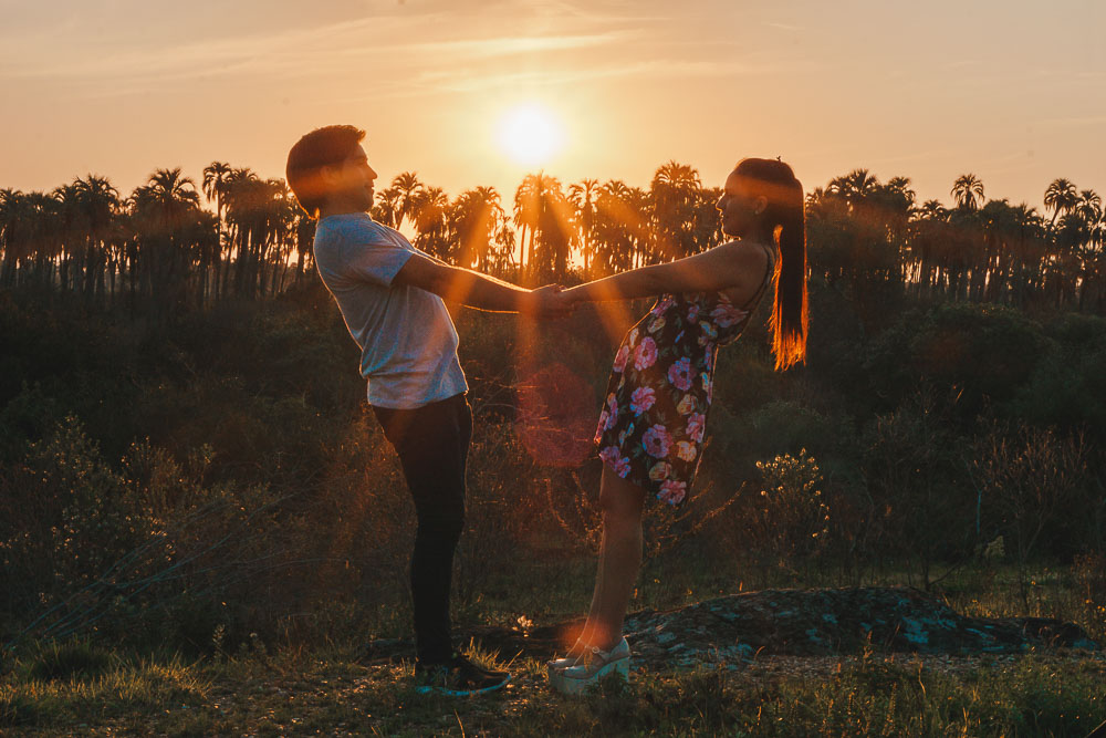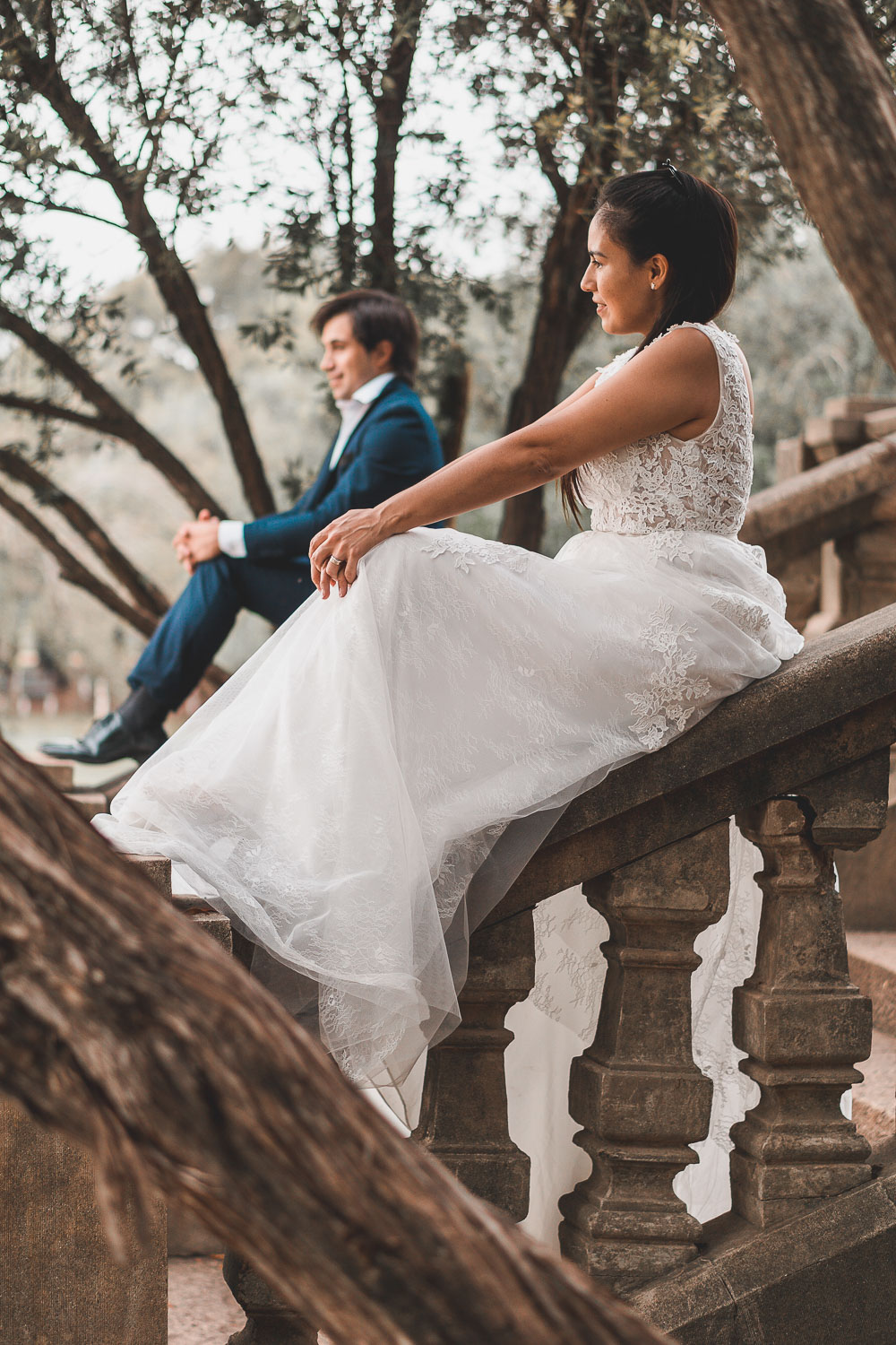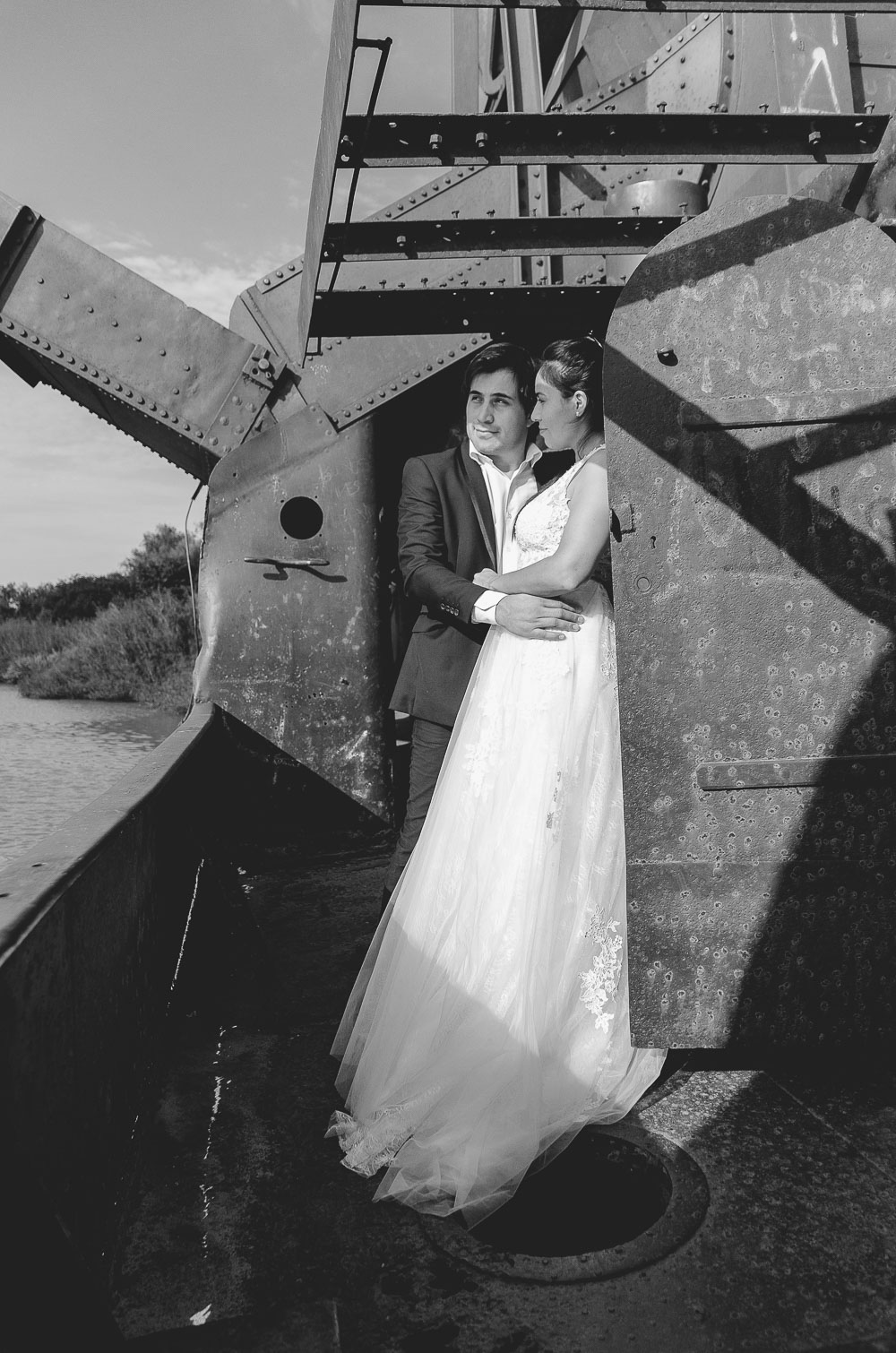 La sesión Pre-boda, el civil, los preparativos, la ceremonia y la fiesta, habían quedado atrás. Victoria y Marcos tenían todo planeado al mínimo detalle, tal cual lo habían soñado. Y la sesión post-boda no sería una sesión de gala nada más, sería una sesión Trash the dress. Cuando el clima parecía no acompañarnos, el amanecer nos encontró en Colón, Entre Ríos, despejando las nubes en el cielo y regalándonos un día de verano en pleno otoño. El Río Uruguay chocaba con la arena, mientras Vicky y Marcos se tiraron de lleno al agua. Las horas pasaron y el atardecer nos sorprendió en el Parque Nacional El Palmar.