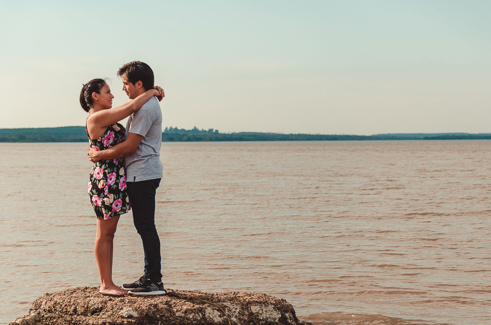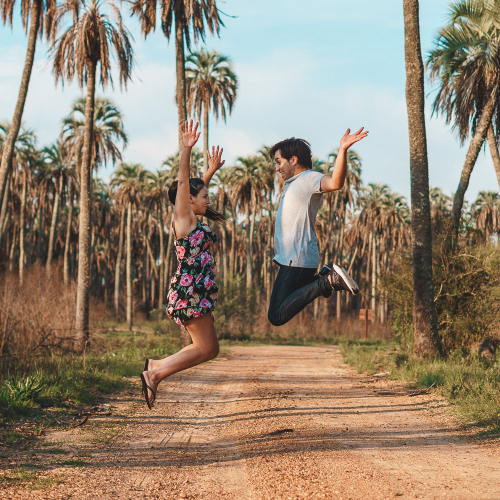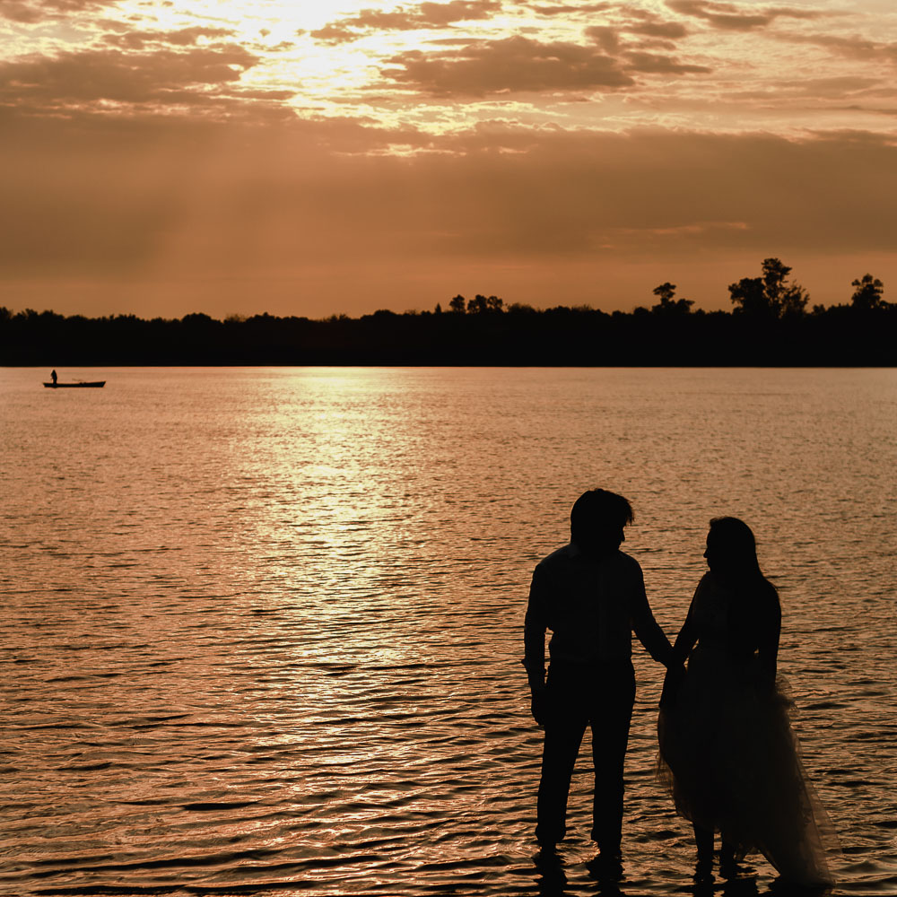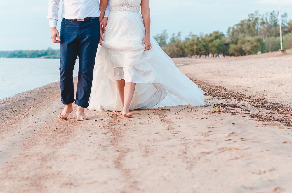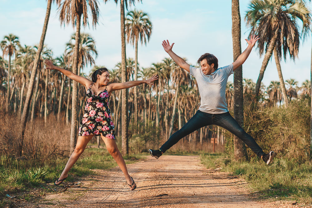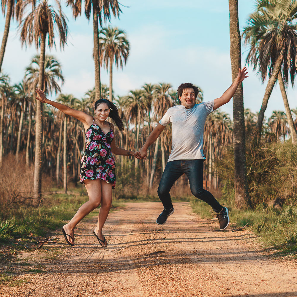 La sesión Pre-boda, el civil, los preparativos, la ceremonia y la fiesta, habían quedado atrás. Victoria y Marcos tenían todo planeado al mínimo detalle, tal cual lo habían soñado. Y la sesión post-boda no sería una sesión de gala nada más, sería una sesión Trash the dress. Cuando el clima parecía no acompañarnos, el amanecer nos encontró en Colón, Entre Ríos, despejando las nubes en el cielo y regalándonos un día de verano en pleno otoño. El Río Uruguay chocaba con la arena, mientras Vicky y Marcos se tiraron de lleno al agua. Las horas pasaron y el atardecer nos sorprendió en el Parque Nacional El Palmar.