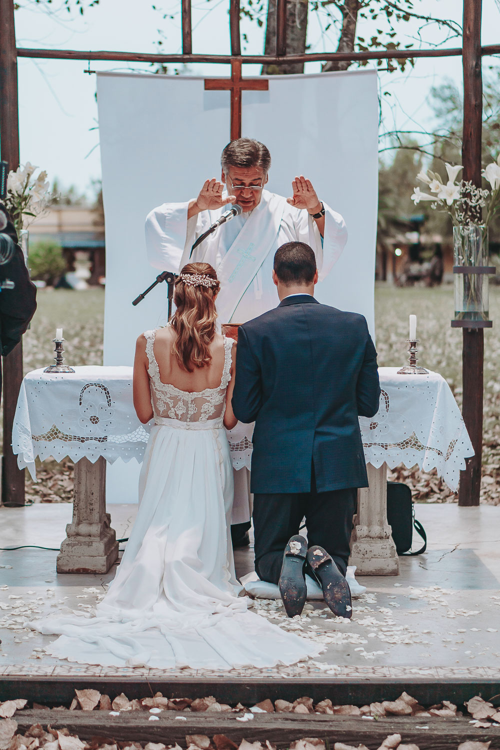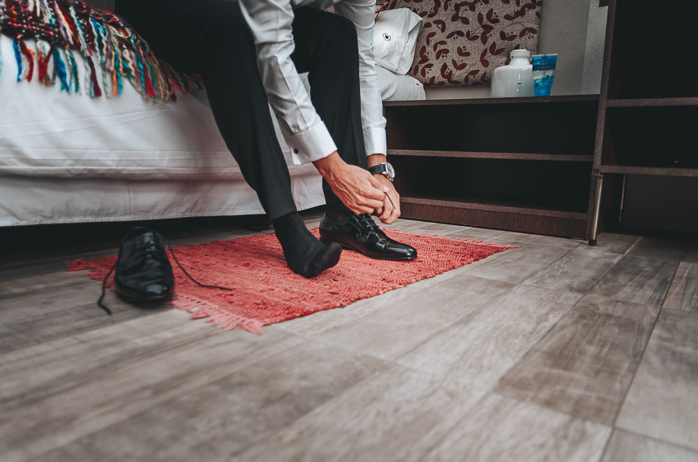 Decidieron sellar el amor que se refleja en sus miradas y el puente de estrellitas emulaba la luz que irradiaban el día de la ceremonia y celebración. Los nervios no los pudieron contener mientras se preparaban para comenzar el gran día, lleno de emoción y mucha alegría, que ni la lluvia pudo alterar.