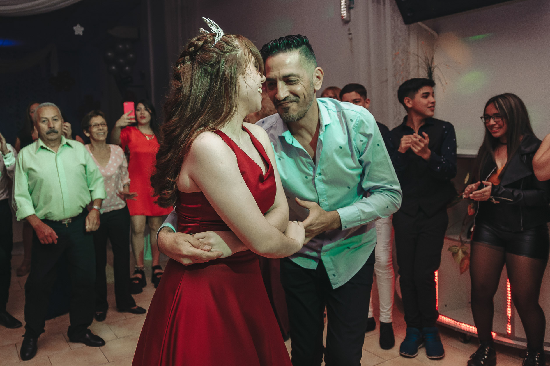 Nos gusta capturar cada detalle de la decoración y retratar a los invitados mientras aguardan tu llegada, el vals, las tandas de baile, la torta, el brindis, risas, alegrías y emociones… nuestra mayor satisfacción es capturar cada momento de la fiesta de manera espontánea. Seremos un observador privilegiado de una noche inolvidable, sin interferir, pero desde luego… ¡nos podés pedir todas las fotos que gustes!