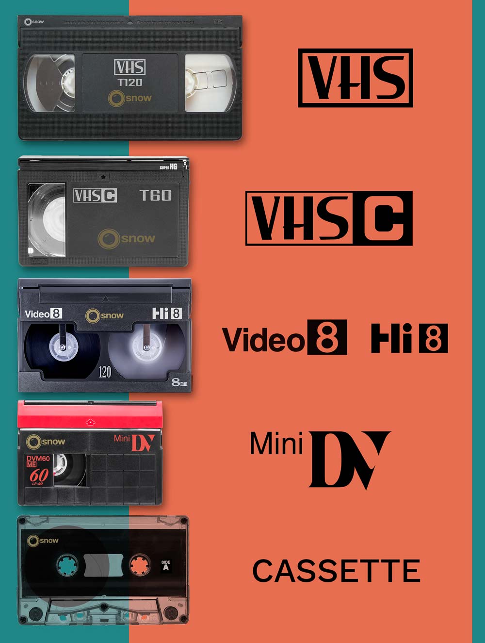 Vida nueva a tus viejas cintas VHS, VHS-C, Video 8mm, Hi8 y MiniDV.